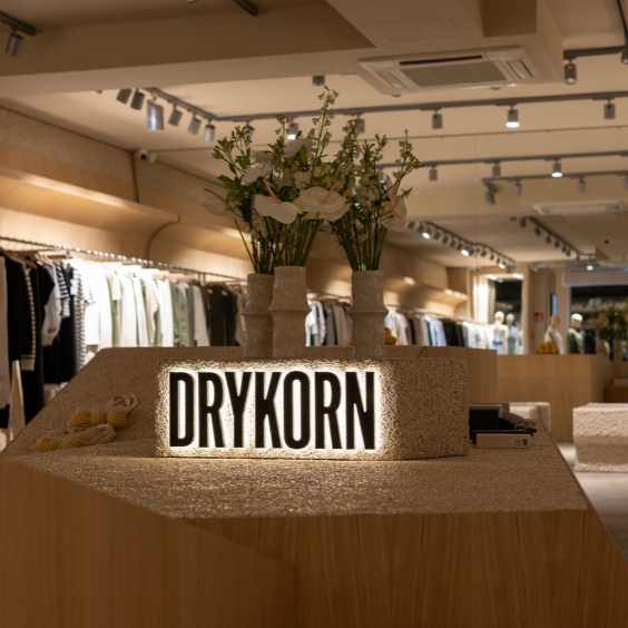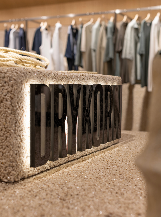 Für DRYKORN haben wir ein Storekonzept realisiert, bei dem ein außergewöhnliches Material im Mittelpunkt steht: Möbeloberflächen aus Steinteppich. Im Ladenbau selten eingesetzt und genau dadurch besonders wirkungsvoll. Unser Leistungsumfang umfasste den gesamten Prozess von der technischen Entwicklung über Konstruktion und Materialdefinition bis hin zur Produktion und finalen Montage vor Ort.