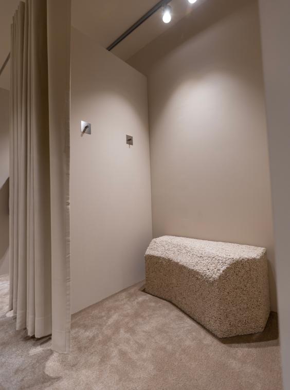 Der gestalterische Anspruch war klar formuliert. Statt glatter Perfektion entstand eine lebendige, natürliche Stein-Struktur mit Charakter. Die eingesetzten Materialien sind harmonisch aufeinander abgestimmt und greifen den vorgegebenen Farbton der Marke bis ins Detail auf.