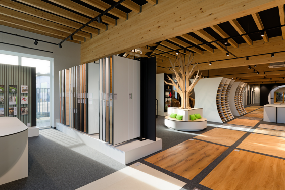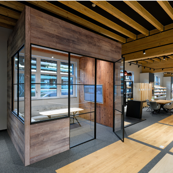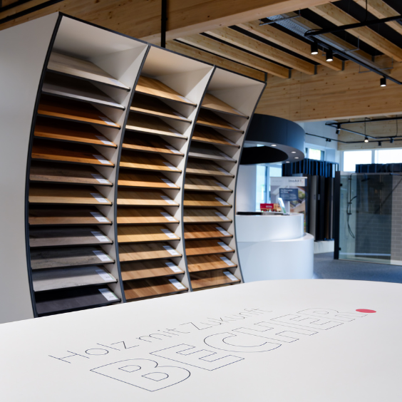 Für den Holzgroßhändler Holz Becher haben wir den neuen Showroom in Oberhausen realisiert und das von der ersten Skizze an bis zur fertigen Raumwelt.